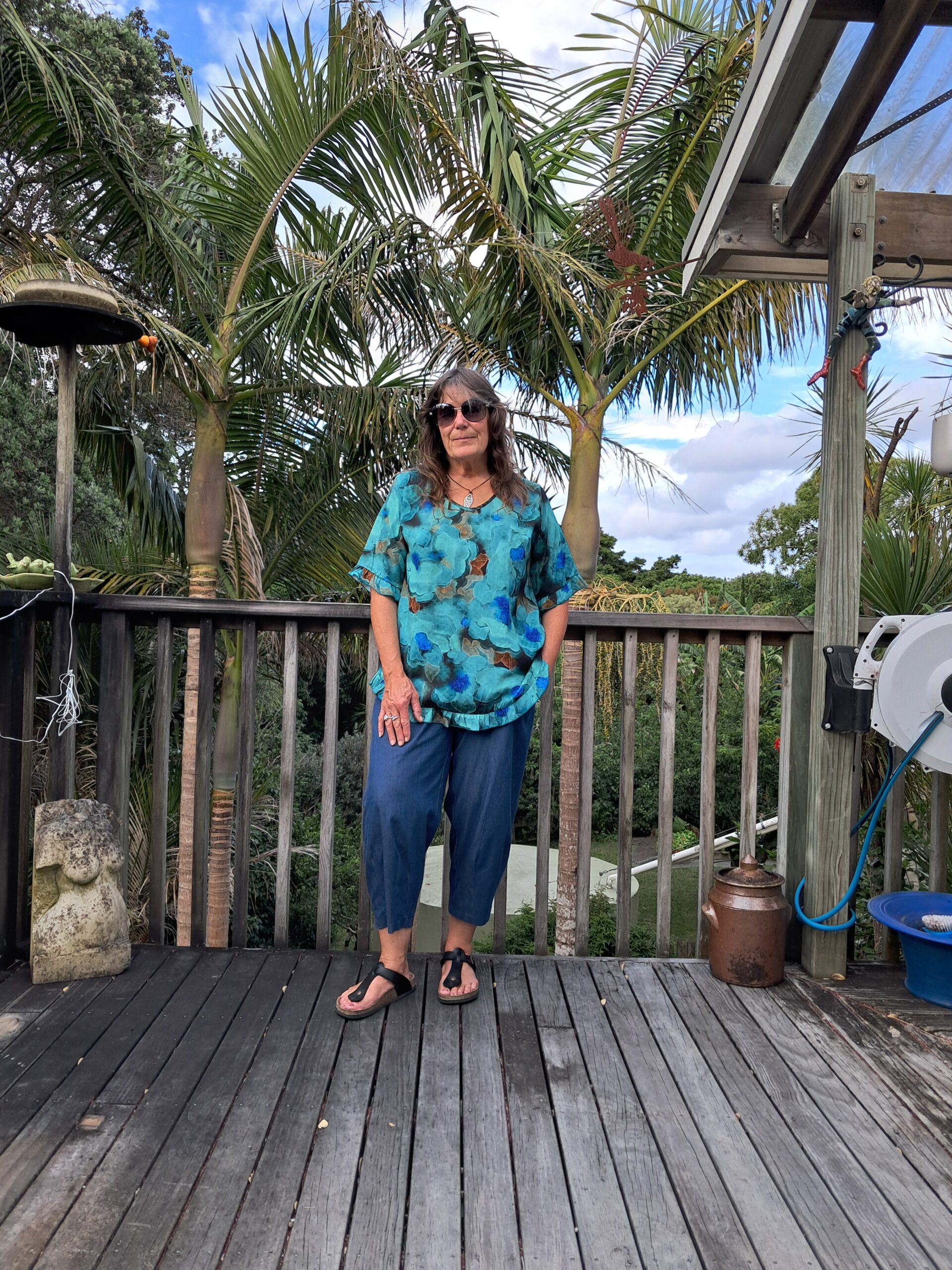 A light weigh top with frill detail. 100% rayon preshrunk.